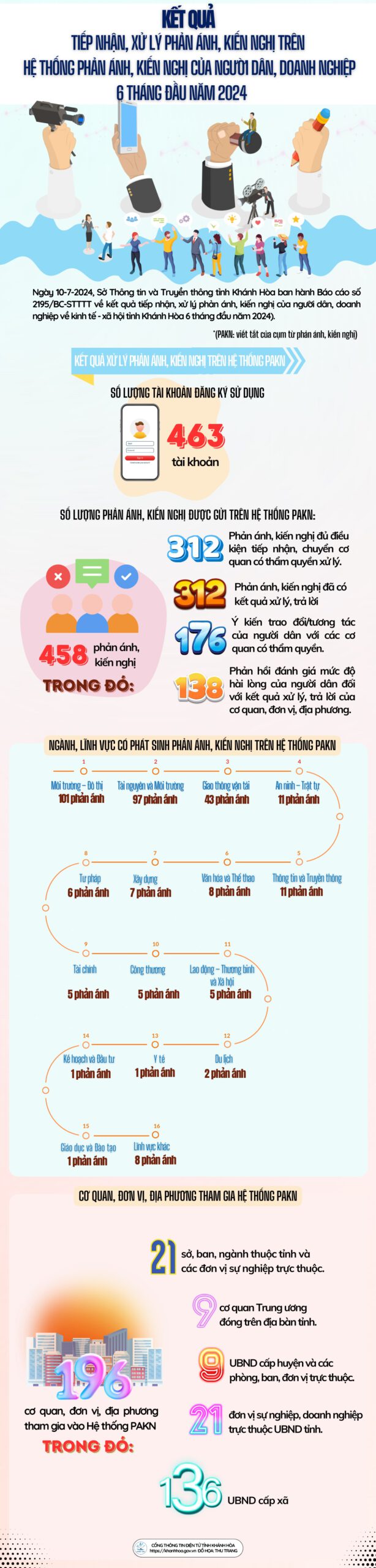 Kết quả xử lý PAKN của Hệ thống PAKN tỉnh Khánh Hòa 6 tháng đầu năm 2024